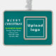 Feliz Navidad! Ornamento con los textos de la Feliz Navidad, el nombre de su negocio o empresa, logotipo, dirección y número de teléfono. Los diseños son textos verdes y blancos amarillos sobre el fondo verde verde azulado y sobre la forma rectangular de formato paisajístico enmarcado. Ornamento para decorar el árbol de Navidad en tu tienda, tienda u oficina. Ornamento para saludar visualmente a sus clientes esta temporada de vacaciones y para anunciar su negocio o promocionar su marca. Personalizar y úselo para crear conciencia de marca. Compruebe la apariencia después de cargar el logotipo y escribir textos. Si la apariencia le resulta agradable, puede realizar su pedido ahora. Si necesita cambiar el tamaño y mover el logotipo y los textos para que encajen en este ornamento, por favor cambie la herramienta de diseño. También puede realizar otros cambios según sus preferencias en la herramienta de diseño, como cambiar el color de fondo, el color de la fuente y el estilo de fuente. Feliz Navidad! Te deseo más ventas esta temporada de vacaciones.