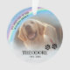 Adorno de Navidad para recuerdo de mascota con un colorido puente del arcoíris en el cielo celestial, una foto desvanecida de la mascota que recuerda, la cita de condolencias "Te veré en el puente del arcoíris", el nombre del perro/gato, huellas de patas y fechas. Esta decoración para árbol de Navidad de mascota es fácil de personalizar y es el regalo perfecto para usted, su familia o amigos para honrar a esas mascotas especiales que ya no están con nosotros.