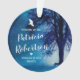 Adornos personalizados de árbol de Navidad conmemorativos con un cielo nocturno azul, estrellas, un árbol rústico, una foto de su ser querido y una plantilla de texto dulce.