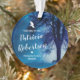 Adornos personalizados de Navidad para árbol conmemorativo con un cielo nocturno azul, estrellas, un árbol rústico, una foto de su ser querido y una plantilla de texto dulce.