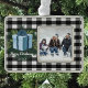 Decore su árbol esta temporada de vacaciones con un adorno con un regalo para Navidades de Buffalo con marcos de vacaciones. El diseño ornamental incluye un regalo de Navidades envueltos a rayas adornado con vegetación de vacaciones en un fondo de gingham blanco y negro. También hay artículos de regalo y de vacaciones disponibles con este diseño.