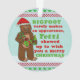 El navidad divertido de este dibujo animado del retruécano diseña demostraciones una imagen de la mueca de Bigfoot. Él está sosteniendo las flores, el vino que lleva y un regalo envuelto mientras que lleva un gorra rojo de Santa. El texto lee, "Bigfoot hace raramente un aspecto, yetti aparecido para desearle Felices Navidad."