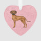 El original ilustracion personalizado de Destei de un lindo perro de raza Ridgeback. El color de fondo es rosa con una textura decorativa clara que se puede eliminar si se desea. En el otro lado hay un área de texto personalizable para un nombre u otro texto personalizado.