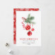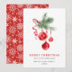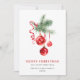 Tarjeta de Feliz Navidad con Adorno Rojo Elegante Saludo Navideño.