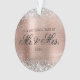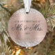 Crea tu propia "Nuestra primera primera Navidad como Sra. y Sr.", un adorno de acrílico de foto circular para recién casados. Purpurina de plata falsa y arte digital de Relieve metalizado oro rosa de estilo metálico. Añada su imagen de boda o luna de miel. Se puede personalizar el estilo de texto, el tipo de letra o los colores.