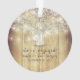 Estamos encantados con el rústico ornamento de campo con tarro de albañil, flores de aliento de bebé, luces de cuerda y textura de madera de bar