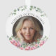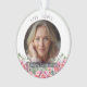 Honor a loved one’s memory with this elegant photo memorial ornament, featuring sage green eucalyptus leaves and pink roses, framing your cherished photo. The front includes your loved one’s name and dates, while the back displays another photo with the heartfelt message “Forever in our hearts.” A beautiful keepsake to remember and celebrate a life filled with love. Hanging on the Christmas tree or displaying year-round in remembrance.