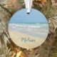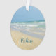 Hermosa playa adornada con magníficas fotografías de la costa, en las que aparece un paracaidista de bonito parado al borde de las olas del océano en un soleado día de verano. Unas bonitas olas de agua azul verdoso se extienden hasta la orilla de arena donde tu nombre está personalizado en una tipografía verde azulada preciosa. Un hermoso regalo de Navidades para una hija, madre, abuela o nieta.
