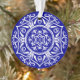 Esta mandala blanca se sienta sobre un fondo azul intenso y profundo. Los colores son inteligentes e introspectivos. Parte de la colección Rosenn Mandala.