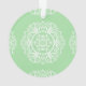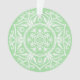 Esta mandala blanca se sienta sobre un suave fondo verde. Los colores son serenos y creativos. Parte de la colección Rosenn Mandala.