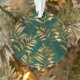 Seamless pattern of gold, jewelry, shiny fern branches and leaves on green, woodland, textured background. Golden fern.