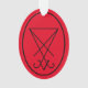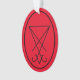Aquí hay un adorno navideño festivo con la sigilia de lucifer encima. El adorno es un diseño ovalado con la sigilia de lucifer en negro sobre rojo carmesí. Es un adorno genial si quieres hacer tu árbol de vacaciones más mágico o satánico. También hace un buen regalo de vacaciones para un ocultista, bruja o satanista.
