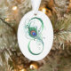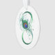 El símbolo del infinito con una pluma de pavo real brillante, verde y artística sobre un fondo blanco. Estilo tatuaje.