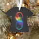 Símbolo de infinito dibujado artísticamente con una hermosa pluma arco iris sobre fondo blanco. Estilo tatuaje.
