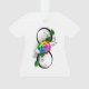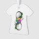 símbolo infinito con rosa arcoiris sobre fondo blanco.