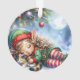 Drift into the magic of the season with this heartwarming holiday design featuring a sweet little elf snuggled beside a peaceful calico kitten. Under the soft glow of a full winter moon and twinkling tree lights, the elf’s candy-striped leggings and festive green outfit add a cheerful pop of color to the snowy night. The delicate ornaments, holly sprigs, and frosted pine branches above complete the cozy Christmas scene. Perfect for anyone who loves whimsical art, cuddly pets, and enchanting holiday moments. AI generated artwork.