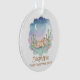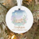 This enchanting ornament features a serene sleeping pony nestled among blooming cacti and succulents under a gentle crescent moon. The soft pastel watercolor palette creates a peaceful desert night scene perfect for celebrating a new addition to the family. It serves as a timeless keepsake that brings a touch of whimsical boho charm to any holiday tree.