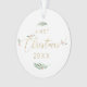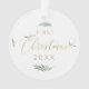 ¡Nuestro adorno acuarela es el recuerdo perfecto de su primera Navidad como pareja casada! En el lado frontal se muestra el monograma dorado con letras de bloques modernas y su apellido centrado. Todo el diseño está rodeado de Navidades acuáticos y bayas rojas con confeti dorado rodado, así como de "Mr. + Sra." En el reverso aparecen los "Navidades" en la tipografía de oro festivo y en el año. #MrAndMrs. #Keespake #FirstChristmas