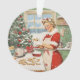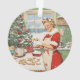 En una acogedora cocina cubierta de nieve, la Sra. Claus es capturada en medio de la cocción de vacaciones. Vestida con un vestido rojo festivo con mangas de piel cortadas y un delantal a juego, sonríe cálidamente mientras prepara una nueva tanda de galletas. La escena está llena de Navidades que se alegran, con un árbol bellamente decorado con latas de caramelo y adornos rojos, mientras que la nieve cae suavemente por la ventana, añadiendo a la atmósfera mágica de la temporada.