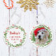 Celebra la primera Navidad de tu perro en su casa "de piel" con este adorable adorno, que incluye una flor acuática festiva de bayas rojas y hojas verdes. Por un lado, reemplace fácilmente la imagen de muestra con una foto favorita de su perro. Personalizar el otro lado con el nombre de tu perro en el guión de impresión a mano roja, junto con tu elección de texto en una tipografía caprichosa, seguido del año.