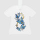 Symbol infinity of gold, decorated with realistic blue butterflies morpho on a white background. Design with butterflies. Morpho. Design with blue butterflies morpho.