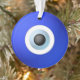 Guardia de los efectos nocivos de Evil Eye con este diseño de amuleto que presenta un ojo malvado con rayos solares contra un fondo azul El ojo malvado puede causar daño o mala suerte para la persona a la que está dirigido por razones de envidia o disgusto.