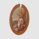 Varios de los cuales se identifican como profanos, deacones o, en la mayoría de los casos, jóvenes acólitos (las cuentas varían), San Tarcio de Roma (mediados del siglo III) es venerado por su devoción al Santísimo Sacramento. + Según la tradición, durante las persecuciones valerianas, el joven San Tarcio se ofreció voluntariamente para llevar la Santa Comunión a cristianos encarcelados. Siendo sólo un niño, sus mayores creían que nadie en la autoridad esperaría que fuera un mensajero así. Sin embargo, de camino a la prisión, San Tarcio fue atacado por una turba pagana o una pandilla de rufianes y apedreado o golpeado hasta la muerte por negarse a entregar a los anfitriones que transportaba. + Aquí, un St. Tarcisius preadolescente, vestido con una túnica blanca y un manto rosado, se representa magullado y roto y tendido sobre un escalón en la base de una columna. Él ha sido lapidado. La sangre cubierta estapa su pelo; las piedras yacen en el suelo delante de él. Los ojos cerrados, la cabeza se mueve hacia la izquierda. Está claro que está muriendo. Sin embargo, se aferra fuertemente al pecho del Eucaristía, indicado por un resplandor blanco. En la columna, un graffito de cuatro letras está garabateado en rojo (¿sangre?): SPQR, abreviatura de la frase Senatus Populusque Romanus, que es (traducido idiomáticamente), El Senado y el Pueblo de Roma. La escena está encerrada en un delgado marco redondo ornamentado con jefes dorados y lozenges turquesa. Hemos proporcionado un fondo que se parece a una superficie de granito muy pulido en amarillos, naranjas y rojos. + San Tarcio es el santo patrono de los primeros comunicantes —especialmente los chicos que hacen su Primera Comunión Sagrada, los Extraordinarios Ministros de la Santa Comunión (EMHC, por sus siglas en inglés) y los servidores de altar. + El interés en este santo se reavivó y popularizó en el siglo XIX con la publicación de la novela internacionalmente vendida "Fabiola: Una historia de la Iglesia de las Catacumbas" (1854) del cardenal Nicholas Wiseman. Véase especialmente el capítulo XXII (El Viaticum). + Festín: 15 de agosto + Crédito de la imagen (BF 004): Imagen antigua de San Tarcio titulada Hostia pro Hostia [Anfitrión del Anfitrión] con texto en español, de una impresión devocional cortada a principios del siglo XX sobre papel de "lienzo" o "lino" (No. 5328), publicada originalmente por Boumard et Fils, París. Francia, de la colección privada del diseñador de la ephemera religiosa.