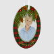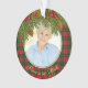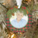 Navidades Tartán escocés recubierto de pepinos, conos y bayas en memoria foto conmemorativa conmemoración Navidad (forma acrílica redonda). La parte delantera tiene una foto de tu ser querido que puedes cambiar. La espalda tiene el nombre de tu ser querido, años vividos y un bello verso que puedes cambiar. Ramas verdes con conos de pino y bayas emparejadas con tartán Navidad tradicional.
