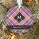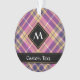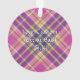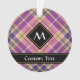 Tartán rosa, amarillo dorado y azul. Patrón sin foco. texto personalizado y monograma.