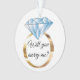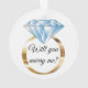 Este hermoso adorno navideño tiene una foto de un anillo con las palabras "¿Te casarás conmigo?" para crear una adorable propuesta navideña. Si lo desea, puede cambiar el texto a otro.