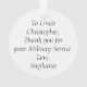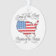 El adorno personalizado personalizado es un gran regalo sentimental para las familias militares, sus seres queridos y los veteranos. Añade cualquier texto en la parte posterior. "Tierra de los libres por los valientes". Muestra el orgullo americano con esta elegante bandera estadounidense en forma de contorno de los Estados Unidos de América, con las palabras en el guión de arriba y abajo. Una apreciación sentimental y elegante de la libertad y la justicia. Derechos reservados © CuteComfy.