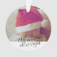 Ornamento de vacaciones de Navidades personalizados All Is Calm All Is Bright de Ricaso - diseñado con un texto de tipografía de desplazamiento con plantilla de foto en la parte delantera y en la parte posterior una plantilla de texto