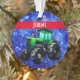 Un tractor verde sobre un fondo azul estrellado deleitará a cualquier granjero en el corazón.