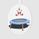 Adorno conmemorativo de trampolín creativo regalo de vacaciones con Santa Claus saltando en trampolín y lugar especial para nombre personalizado en la parte posterior.
