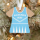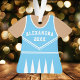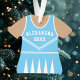 Celebra el espíritu de tu animadora con este adorno de uniforme de animadora azul y blanco personalizado. Perfecto para conmemorar una temporada especial, equipo o logro individual. Personalízalo con un nombre y año para crear un recuerdo único.