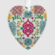 A richly detailed, symmetrical pattern featuring intertwined Celtic knots, heart motifs, and delicate floral elements in bright teal, magenta, yellow, and green, creating a joyful, handcrafted look ideal for ornament and decorative lifestyle products.