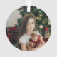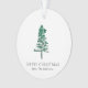 Ornamento navideño moderno con un diseño simple con mi pino acuarela pintado a mano junto con el saludo editable "Feliz Navidad". Utilice la plantilla para agregar una foto a la parte posterior.