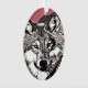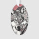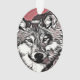 Retrato gráfico de un lobo gris de color rosa y púrpura
