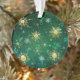 Adorno Xmas copos de nieve dorados sobre fondo verde