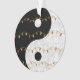 Este ornamento tiene un arco iris blanco en forma de yin yang negro con cuerdas de luces rojas y verdes que se colocan a lo largo de ella. Si a uno le gustan las formas esotéricas o la filosofía oriental, puede que sea un añadido a la decoración de las vacaciones. El símbolo yin yang representa la religión y la filosofía del taoísmo, como vivir en armonía y equilibrio.