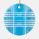 Adornos de escarcha. La escarcha es un diseño abstracto creado por Anna M. Asbury y consiste en un fondo azul y blanco con líneas que corren vertical y horizontalmente. Tres Runas Chalc descansan en el centro.