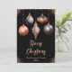 Envía cálidos deseos navideños con esta sofisticada tarjeta plana de Navidad que presenta cinco elegantes adornos en tonos de negro y dorado rosa. Cada adorno muestra un diseño único: floral, copo de nieve, brillo falso que gotea, patrón de diamantes y estrellas, contra un fondo negro rico con destellos dorados rosa. La paleta lujosa y la disposición refinada hacen que esta tarjeta sea ideal para familias con estilo, saludos formales o mensajes navideños corporativos. Perfecta para aquellos que aman la elegancia moderna con un toque festivo.