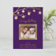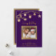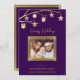 Celebre la alegría de la temporada con esta elegante tarjeta plana de "Felices Fiestas". El fondo rico y profundo púrpura está adornado con estrellas doradas brillantes y delicados adornos, evocando un sentido de maravilla festiva. Un hermoso marco dorado acentúa perfectamente su preciada foto familiar, lo que hace que esta tarjeta sea un verdadero recuerdo personal. Debajo de la foto, el nombre de su familia y los nombres individuales se muestran elegantemente en escritura dorada brillante, agregando un toque personal a sus saludos navideños. Esta tarjeta es perfecta para enviar cálidos deseos a amigos y seres queridos durante la temporada de Navidad.