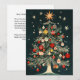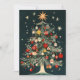 Celebre la magia de la temporada con esta encantadora ilustración vintage de un árbol de Navidad adornado con una impresionante variedad de adornos clásicos. El árbol está bellamente decorado con una variedad de bolas rojas, doradas y verdes, cada una con patrones intrincados y diseños nostálgicos. Una estrella brillante y radiante se encuentra en la parte superior del árbol, iluminando la escena festiva con un cálido resplandor. Esta tarjeta captura perfectamente la esencia de una Navidad tradicional con su arte detallado y vibrante, lo que la convierte en una excelente opción para enviar alegría navideña a los seres queridos.