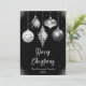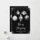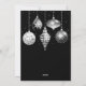 Envía cálidos deseos navideños con esta sofisticada tarjeta plana de Navidad que presenta cinco elegantes adornos en tonos negros y plateados. Cada adorno muestra un diseño único - floral, copo de nieve, brillo falso que gotea, patrón de diamantes y estrellas - contra un fondo negro rico con destellos plateados. La paleta lujosa y el diseño refinado hacen que esta tarjeta sea ideal para familias con estilo, saludos formales o mensajes navideños corporativos. Perfecta para aquellos que aman la elegancia moderna con un toque festivo.