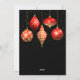 Envía cálidos deseos navideños con esta sofisticada tarjeta plana de Navidad que presenta cinco elegantes adornos en tonos rojos y dorados. Cada adorno muestra un diseño único - floral, copo de nieve, brillo falso que gotea, patrón de diamantes y estrellas - contra un rico fondo negro con destellos dorados. La paleta lujosa y la disposición refinada hacen que esta tarjeta sea ideal para familias con estilo, saludos formales o mensajes navideños corporativos. Perfecta para aquellos que aman la elegancia moderna con un toque festivo.