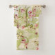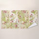 Florales, hojas y remolinos libres de pequeño tamaño sobre parches de manchas de color verde limón y salpicaduras blancas y pájaros ladinos itinerantes