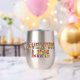 This 1960s inspired Adventure Life design features colorful tie dye text. Made for travelers, hikers, dreamers, and anyone who feels most alive chasing the next horizon. This wine tumbler is perfect for picnics, camping, van life, wine time and daydreaming about your next adventure. Insulated to keep your wine as chill as you.