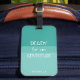 Guión personalizado en letra personalizado "listo para una aventura" con fondo de paleta oscura verde azulada y un monograma personalizado en letra decorativa
