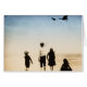Aviones antiguos en vuelo mientras los niños vigilan la playa.